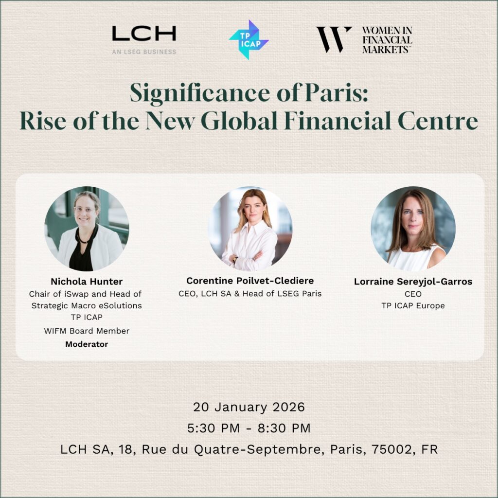 Join Women in Financial Markets (WIFM), in partnership with LSEG and TP ICAP, for a discussion on the significance of Paris as the new global financial centre. Industry leaders will explore Paris’s expanding role in global finance, the key drivers behind its growth, and the implications for international markets. Date: 20 January 2026 […]