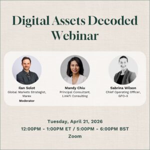 Crypto and digital assets continue to evolve at speed – from shifting market dynamics to growing institutional adoption and real‑world use cases. Join us for an interactive panel featuring Mandy Chiu, Sabrina Wilson, and moderated by Ilan Solot, as they cut through the noise and focus on what actually matters for investors, institutions, and market participants today.
