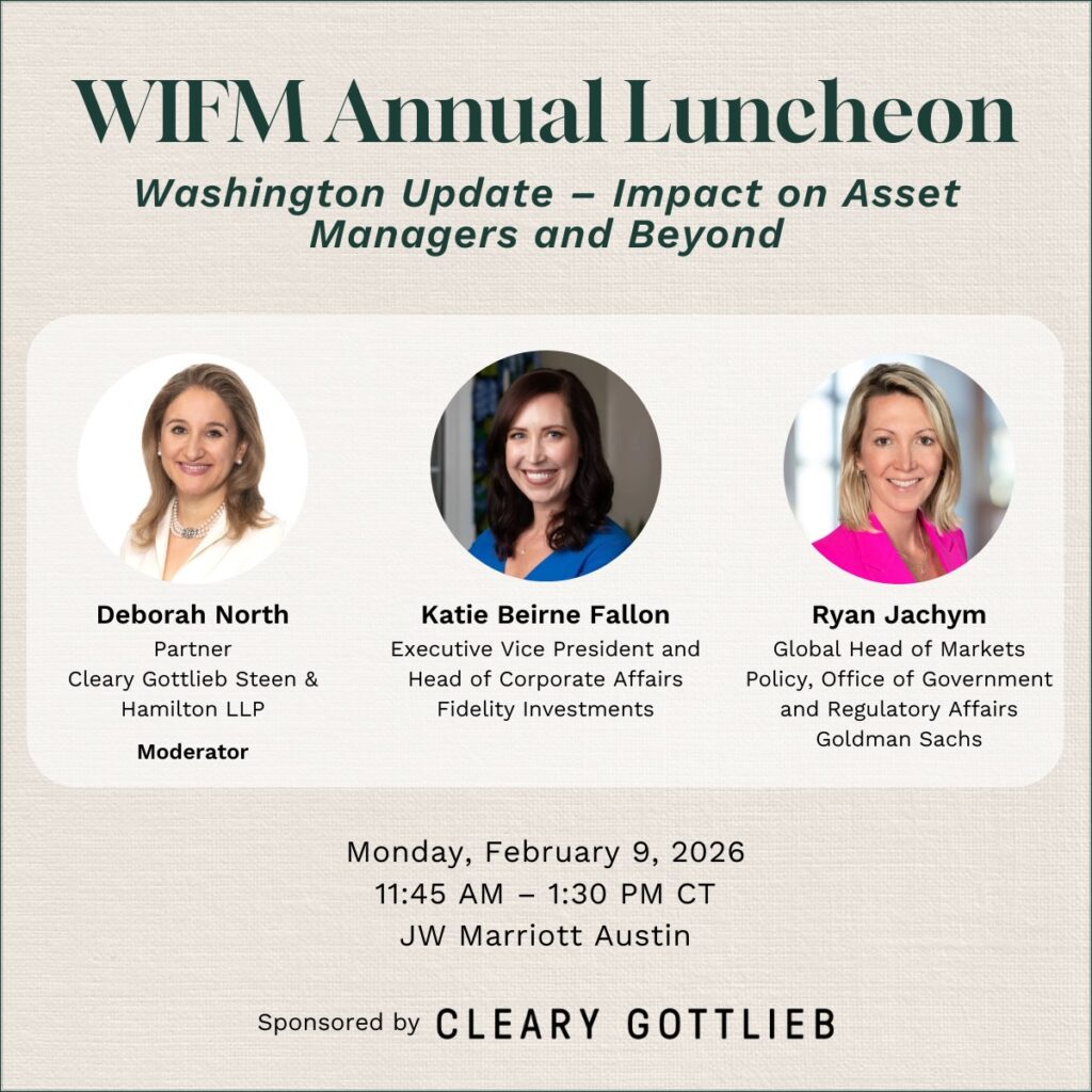 Washington Update – Impact on Asset Managers and Beyond Sponsored by Cleary Gottleib Please join us at the annual WIFM lunch at the Asset Management Derivatives Forum, featuring a panel discussion with Katie Beirne Fallon, Executive Vice President and Head of Corporate Affairs, Fidelity Investments, and Ryan Jachym, Global Head of Markets Policy, […]